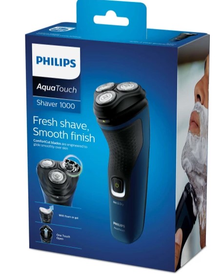 La afeitadora Philips AquaTouch 1000 te ofrece una afeitada en seco o en húmedo suave y refrescante gracias a las cuchillas ComfortCut autoafilables